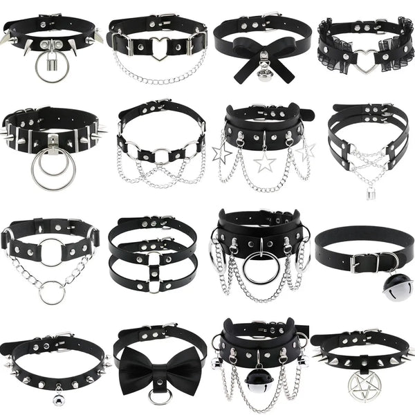 DIEZI Fashion Sweet Cool Torques Necklace Gothic PU Leather Tassel Chain Choker Collar Necklace For Women Men Body Chain Jewelry