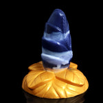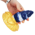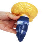 FAAK Large Base Butt Plug Blue And Gold Bud Shape Ribbed Anal Sex Toys With Suction Cup Adult Erotic Products Couple Flirting