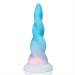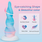 The colorful monster dildo has 8.6-inch monstrous size and realistic spiral design. The shape with a gradual transition of pastel blue and pink shade looks like a blend of dreams, vibrant and captivating. With its unique twisted design, this sex toy is designed to enhances comfort during insertion, while the gentle curves and ridges along the shaft provide stimulating pleasure.