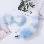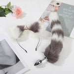Plush Ears Headband Headdress with Tail Chrome Metal Plug Cosplay Toy.