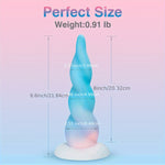 The colorful monster dildo has 8.6-inch monstrous size and realistic spiral design. The shape with a gradual transition of pastel blue and pink shade looks like a blend of dreams, vibrant and captivating. With its unique twisted design, this sex toy is designed to enhances comfort during insertion, while the gentle curves and ridges along the shaft provide stimulating pleasure.