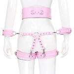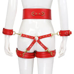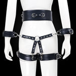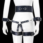 Getting out into the world of bondage doesn't always mean going immediately to the steel and metallic restraints. This effective system includes belt, 4 cuffs , and a center connection piece. You can use these items to create an intricate hog-tie setup or use the cuffs to put your partner in a variety of bondage positions. The cuffs are made of a lightweight fabric and are highly adjustable.