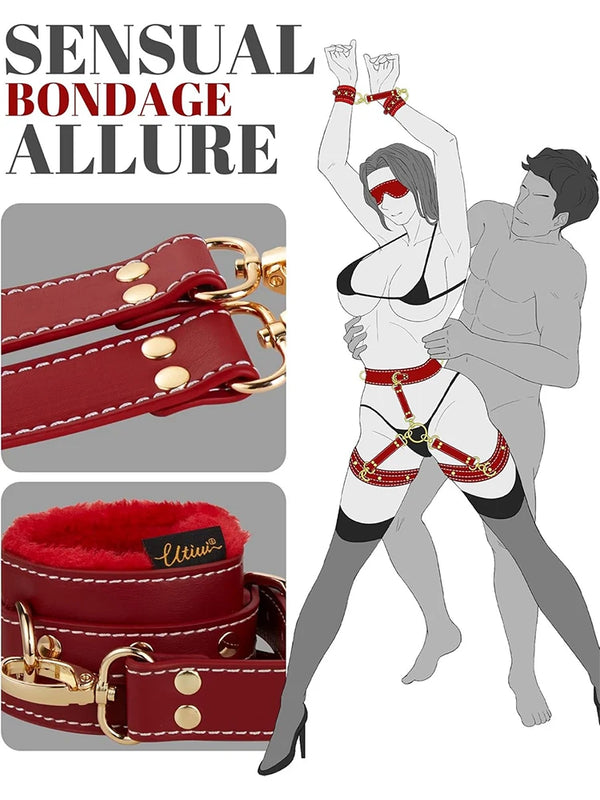 Sex Bondage BDSM Handcuffs Ankle Cuff Restraints SM Slave Waist Harness Couple Fetish Toy Kits Hand Restraint Cuff Eyeblinder