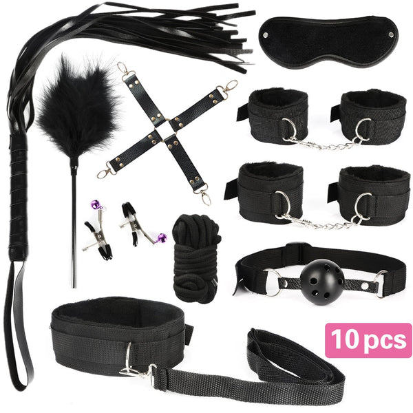 13pcs/set SM Bondage Restraint G Spot Vibrators Adult Game Props Women Sex Toy Noylon Handcuffs Clit Stimulator Adult Sex Shop